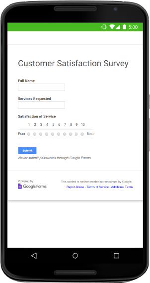 - Easily create custom Forms surveys and send them to large groups of people at once.